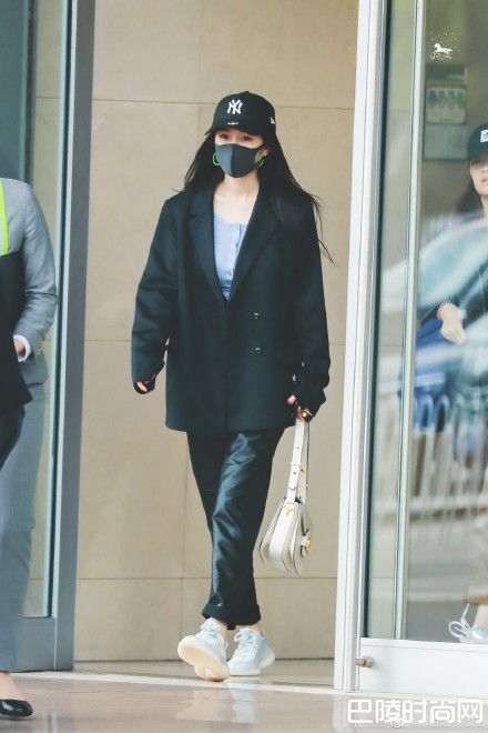 杨幂17号时现身北京机场身穿一件黑色的西装外套,而在外套内她穿了一件水蓝色的针织衫,下半身穿了高腰的黑色皮裤搭配球鞋,整体造型相当休闲带有一丝酷帅的气息,而针织衫U领的设计露出了大片白皙的肌肤,而这件衣服却让杨幂的胸型看起来有些下垂,再加上高腰裤的视觉效果,让杨幂的胸部看上去像垂到了腰间,造型有些NG,而许多网友认为杨幂这套造型把纤细长腿以及身体曲线都遮盖住,原先的身材优势都被遮住了,纷纷留言表示:把优点全遮住了、真的是遮住了有点,还是应该露腿的、第一次觉得不好看、胸都掉到腰上了,引起许多网友吐槽。