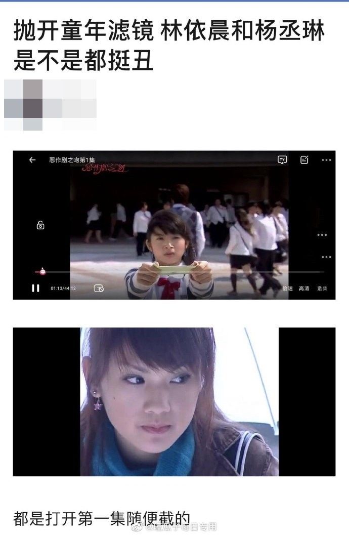 林依晨26岁时主演《恶作剧之吻》,作品轰动全亚洲,不但赢得金钟视后,连拍二部曲都掀起收视热度,不过她当年扮演湘琴的造型,以及杨丞琳2005年演出《恶魔在身边》的扮相,被网友截图质疑:抛开童年滤镜,林依晨和杨丞琳是不是都挺丑?