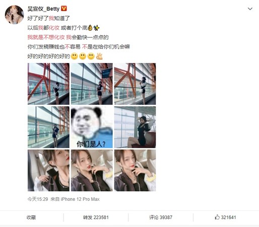 在网路上一阵热议后,吴宣仪也在13日透过微博发文回应,直言好了好了我知道了,以后我都化妆或者打个底,我就是不想化妆,我会勤快一点点的 ,并且酸带风向的营销号你们发稿赚钱也不容易,不是在给你们机会嘛,许多网友纷纷安慰她姐姐天生丽质、化不化妆都是大美女。
