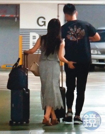 停好车后,鸡排妹跟该名男性驾驶各自拖着行李箱,走着走着,途中鸡排妹似乎忍不住自己浓浓爱意,既摸又捏了该男屁屁,2人于是手牵着手,搭电梯上楼到柜台准备入住。