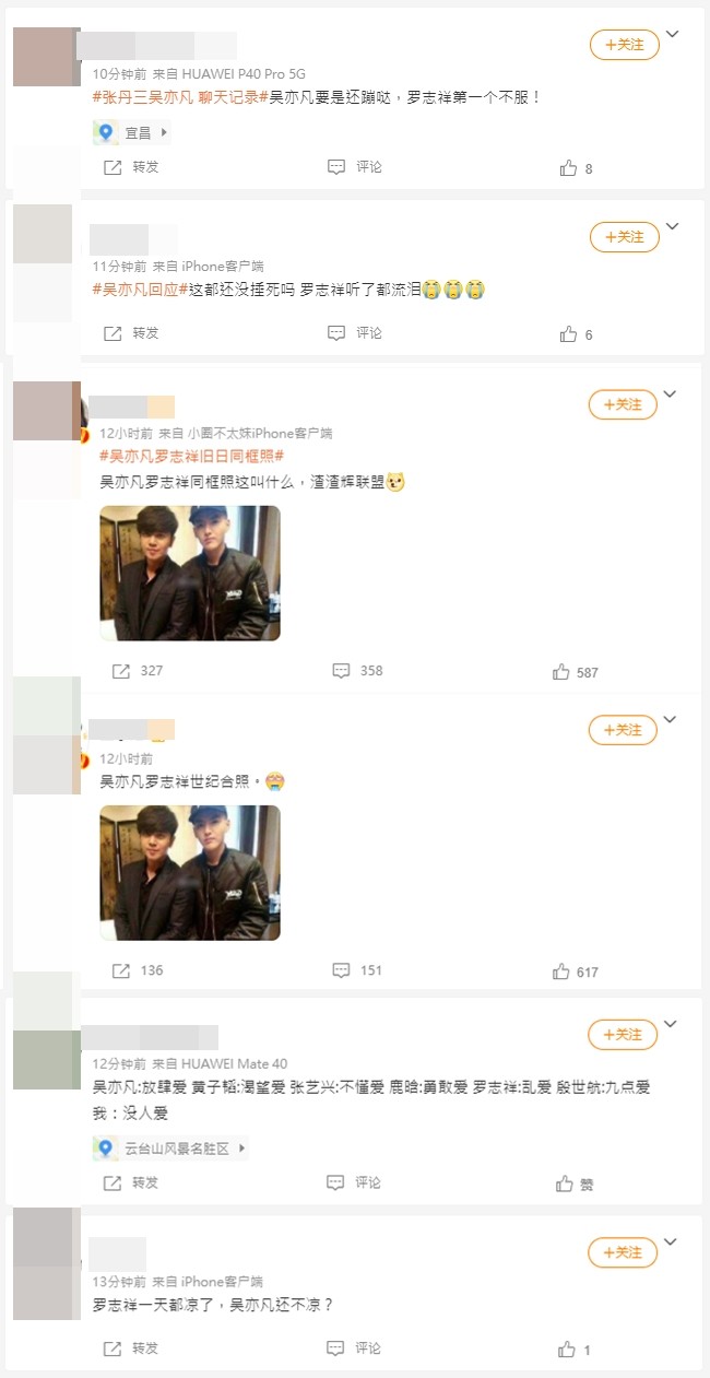 怎料事隔1年换吴亦凡深陷负面传闻中,微博网友都上传他们在电影《美人鱼2》的合照酸说吴亦凡罗志祥世纪合照、吴亦凡罗志祥同框照这叫什么,渣渣辉联盟,还有人分析他们虽然都是时间管理大师,但罗志祥9年来对外还是专一,爆出事件后也是诚恳道歉。