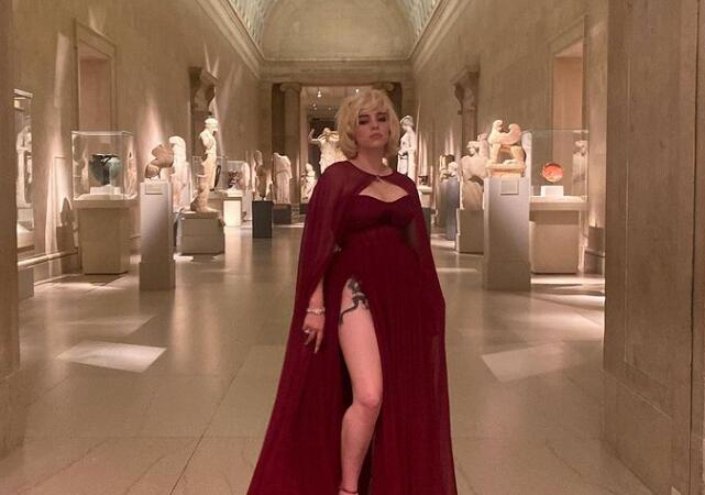 媒体报导,怪奇比莉日前出席有时尚奥斯卡之称的Met Gala盛会,当天她换上优雅的裸色系礼服,低胸的设计和紧身马甲的造型露出姣好的上围,再搭配一头复古金发,完美重现玛丽莲梦露的造型,得到不少好评!近日怪奇比莉又在IG晒出一张身穿红色洋装的辣照,只见她的性感F杯呼之欲出,更罕见秀出接近三角地带的腿根刺青,让不少网友看了都纷纷大喊:太性感了!、超美!、刺青超赞。