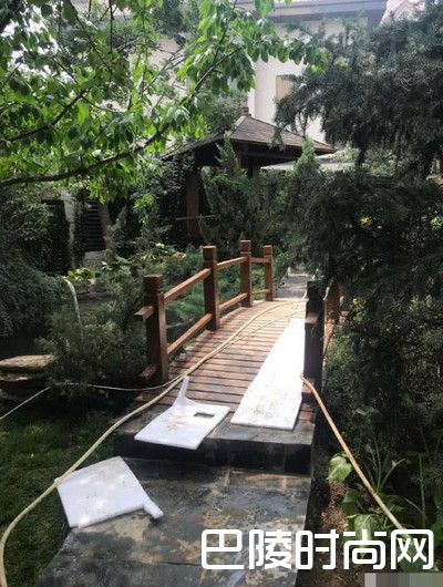 网友们却在纷纷感叹这个房子太壕气了,仅一个角落就能显示出丰厚家底。从图中看,这是一个面积不小的花园,里面小桥流水,有假山也有小亭子。远处还有一座三层楼高的别墅。只是花园里貌似正在进行维护工作,一路上都铺着泡沫板子,应该是为了防止将泥巴带进室内。