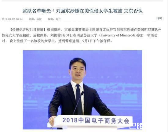 京东商城执行长、网红奶茶妹章泽天的老公刘强东在美国出差时,涉嫌性侵遭到明尼苏达州警方逮捕,目前虽获无保释金释放,但仍等待法院传唤,美国警方也发布了他被逮捕的档案照。当地警方表示,目前还在调查中,无法确定刘有罪或无罪,但并未限制出境。
