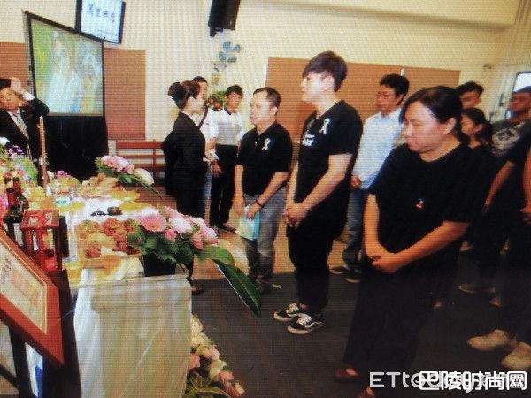 吴东桦搏大浪舍身救8岁女童,女童父亲(上图右1)母亲(下图右1),低调的到吴的到告别式向吴致上最高致意。