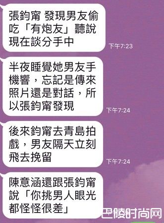 另外,爆料友人指称,抓包劈腿的过程,是张钧宁亲自和闺蜜诉苦,陈意涵也知情,忍不住说:你挑男人眼光都怪怪、很差!看好姊妹为情受苦很不舍。
