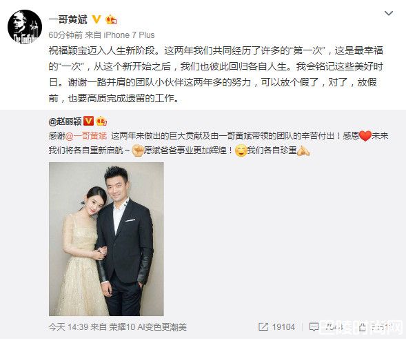随后,黄斌也特别在微博上转发赵丽颖的发文,并回应对方的祝福,从这个新开始之后,我也碧此回归各自人生。我会铭记这些美好时日。谢谢一路并肩的团队小伙伴这两年多的努力,可以放个假了,对了,放假前,也要高质完成遗留的工作。即便结束合作关系,依旧彼此祝福,两人的好交情感动了不少网友,也有不少粉丝在底下纷纷喊话:希望你们都能越来越好、颖宝我会一直都在,意外引起不少热议。