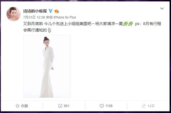 刘诗诗7月透过工作室微博宣布:7月暂无工作安排,小姐姐去放个暑假。之后就鲜少再更新社群网站,也没有发过任何近照。近4个月以来,她难得露脸,还是跟吴奇隆一起拍影片祝福朋友结婚,只有肩膀以上入镜,脸蛋也稍微圆润了一些,除此之外仍没有泄漏近况。