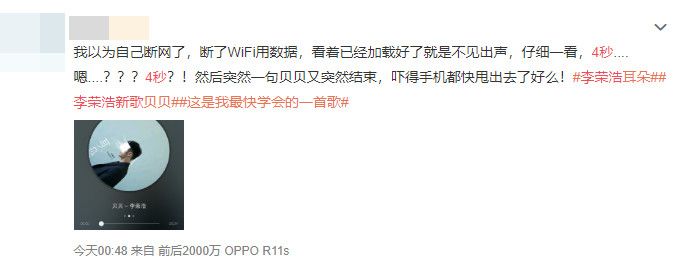 李荣浩近日在举办私密的《耳朵听歌会》的时候,抢先公开新专辑有4首全新曲目,其中之一《贝贝》是首只有5秒的歌曲。他说因为很多华语歌手都会唱到Baby,于是干脆把「Baby唱成一首歌。