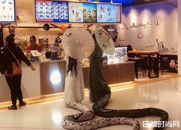 微博上流传的青蛇白蛇cos照引起热议,2个正妹突发奇想,穿起一白一绿的古装、撑着纸伞现身商场,参加电影《白蛇:缘起》的万圣节活动,正在买饮料时被路人拍下,裙底下还滑出一白一绿的蛇尾巴,一边走一边看到尾巴在身后蠕动,吸引许多小朋友伸手又摸又抓,有不少人目测蛇尾至少200公分。
