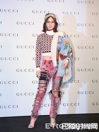 Jolin蔡依林今晚(11/1)为GUCCI新店开幕站台,她穿着红色GG毛衣配破裤登场,她认为现在的GUCCI给她的感觉是复古嬉皮的感觉,很适合玩角色扮演,并定义今晚是俏皮读书人角色。
