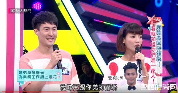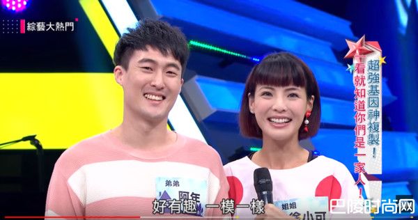 现职是出版社业务的弟弟阿年一现身,立刻引起全场惊呼连连,他顶着俐落短发,身穿粉色条纹上衣搭配灰裤,浓眉大眼、灿烂笑容让人留下深刻印象,鼻梁真如徐小可说的一样高挺,姊弟俩笑起来的嘴角弧度如出一辙,却意外被吴宗宪揪出唯一不同的部位。