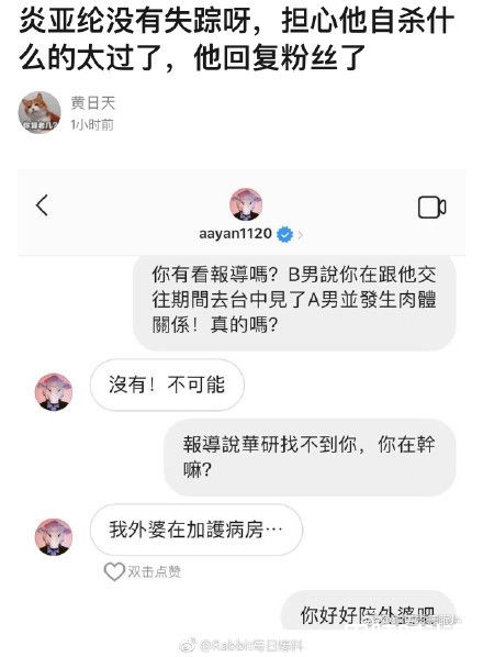 考量到截图真实性,向友人关心情况,获得证实炎亚纶的外婆的确生病了,友人透露,面对外婆的病情及这次事件,炎亚纶心情很沉重,而蜡烛两头烧的炎妈妈虽然没有多说什么,但心情是既心疼又无奈。
