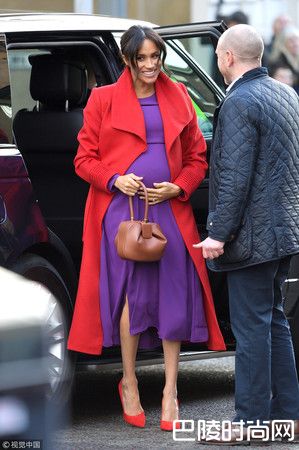 梅根14日与老公哈里王子一起到英国默西塞德探访,这是两人2019年首次合体亮相,她也非常难得地穿上紫色紧身裙,露出六月浑圆孕肚,外面还搭配了一身红色长外套,大红大紫现身,而最引人注目的是,她脚蹬Stuart Weitzman的10公分红色细跟高跟鞋,动作依旧非常灵活。