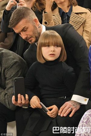 只见7岁的哈珀一身黑色装扮,搭配及肩短发以及平浏海,坐在爸爸的大腿上,一脸充满好奇和期待的神情。和这家人坐在一起的还有《Vogue》主编Anna Wintour,发型从背后看几乎和哈珀一模一样,贝克汉姆便在IG限时动态笑说,哈珀和安娜,谁更好看?她们都很棒!