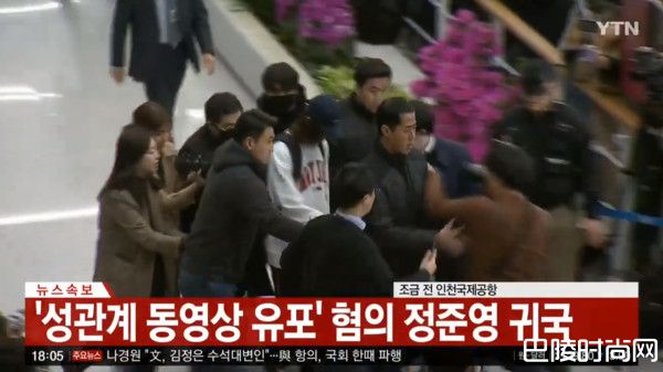 韩涉嫌偷拍多名女性的男歌手郑俊英紧急被召回国,在台湾时间下午大约5点左右现身仁川机场,然而他全程低头不发一语,脚程飞快没有要停下来的意思,前方的保全甚至暴力推开记者,在现场造成混乱。