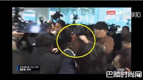 郑俊英12日现身南韩仁川机场,随即被大票媒体包围,保镳因而动粗推人,引爆摄影师怒火,有网友发现其中一位被多次狠推的咖啡色衣服摄影师被保镳推开后,气愤地从后方的漏洞处一把抓住他的头发,并往后猛扯,他因此被拍到脸部狰狞的特写照,在网路上广为流传。