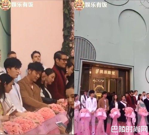 据报导,范冰冰顶着素颜到美容院,关心现场布置的环境。她戴着口罩,细眉没上眼妆,模样清秀,现场有工作人员忙着整理,店铺26日开业影片曝光,男友李晨站在中间剪彩,还有女星马苏、弟弟范丞丞、旗下艺人彭小苒、男神胡兵等人都到场参加。