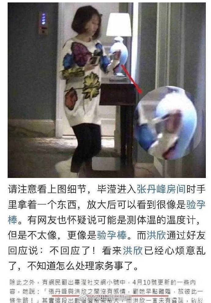 演员张丹峰1年内就被爆了2次和经纪人毕滢有染,第一次老婆洪欣有跳出来否认,但这次则一语不发还把亲密合照都删除,而在这次被爆料的影片中,眼尖的网友指出毕滢手上拿的是验孕棒。