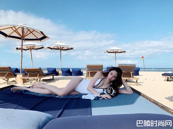 照片中,可以看到欧阳妮妮妩媚地撩起长发,双脚并拢跪坐远眺美景,完美秀出S曲线,平常戏里包紧紧,可能是心情放松的关系,她大方穿上黑色泳衣入镜,相当映衬雪白肌肤,三角泳裤让她的大腿根部全露,展现长期的健身成果。