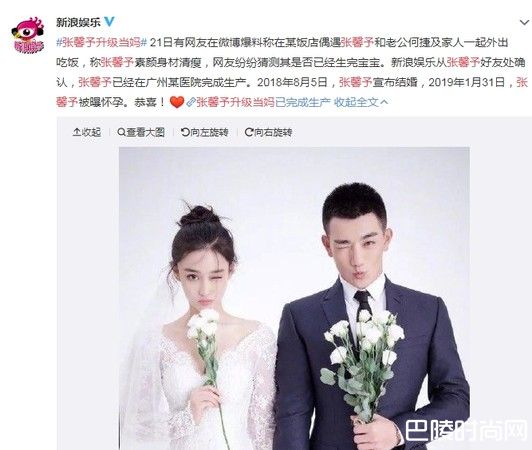 21日,一名网友在微博爆料,在某饭店偶遇张馨予,且发现对方素颜、身形清瘦,怀疑是否已经生产?对此,《新浪娱乐》报导声称从张馨予好友确认,张馨予已在广州某间医院完成生产,消息一出,顿时让关键字张馨予升格当妈火速登上微博热搜。