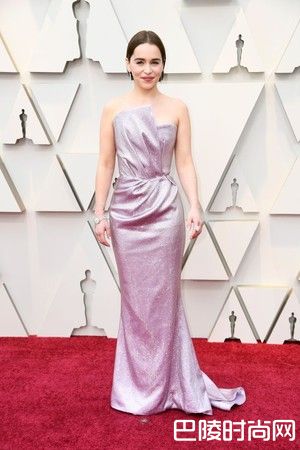 艾蜜莉亚克拉克除了特别喜欢穿深 V 礼服来强调身材曲线之外,她也喜欢这种贴身、胸前有特殊设计的礼服款式。上宽下窄的高腰设计同样在视觉上有拉长身高的效果。