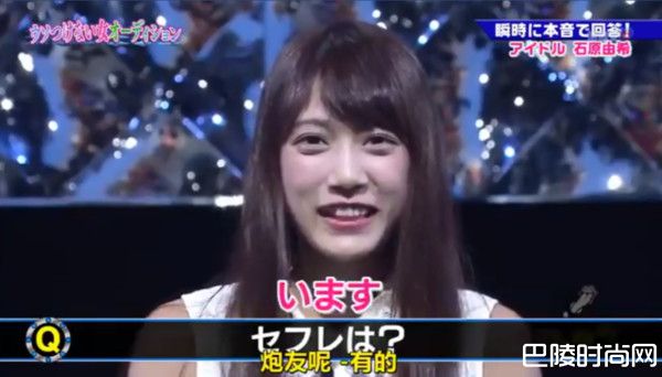 就连问到会想和什么样的人发生关系时,石原由希也只简单地说鼻梁挺的都可以,就连喜欢的男生性器官也说出来了,不过身为偶像说这些真的没关系吗?她只是淡定地说:粉丝虽然对有男朋友的事情会生气,但对有炮友的事情到目前为止都没有太大的反弹,大家都很温柔,不会有事的!