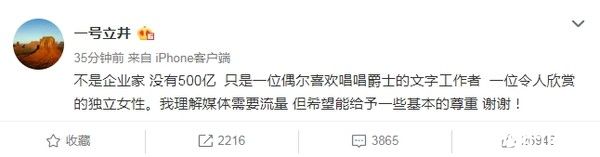 面对外传女友坐拥惊人身价,李亚鹏发文一开始就澄清写道,不是企业家,没有500亿,只是一个偶尔喜欢唱唱爵士的文字工作者。随后,他更形容女方是一位令人欣赏的独立女性。文末,他表示:我理解媒体需要流量,但希望能给予一些基本的尊重,谢谢!