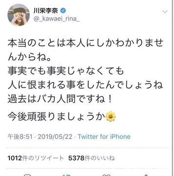 川荣李奈22日晚间在推特发文,事实只有本人才知道,不管事实的真假,做了遭人恨的事情吧,过去真是个浑蛋!今后要加油了、但是啊,无论我有多讨厌,多生气,和公诸于世的绝对不一样,这样就轻松了?这样也不会有人幸福吧?我的力量会比现在的更强2倍,我没事哦!最后发文疑似呛老公:拍张照要2万?好贵啊!哪来的大牌演员!发泄完情绪真痛快,晚安。她的推文随后秒删,仍被大批网友截图,疑似是对爆料者、老公都有抱怨,除了引发男男方粉丝不满,也掀起众人惊呼这些是真心话吧、感觉看到她的本性、连老公吐槽、以后大概会离婚。