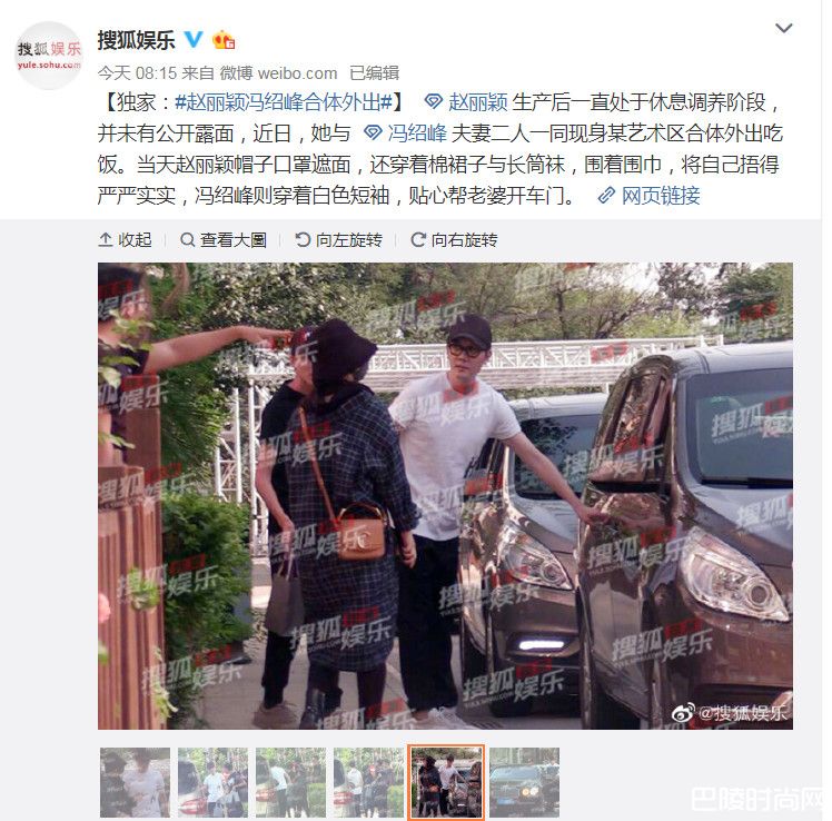 据《搜狐娱乐》报导,赵丽颖近日和冯绍峰合体工作,全身以黑色调为主,戴着大渔夫帽和口罩遮住全脸、包得非常严实。冯绍峰则穿着白色短袖和简单的棒球帽,上车的时候还贴心先帮老婆开车门,一路都紧挨在旁边,看得出来很保护对方。