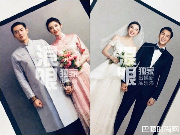 而附上的婚纱照有两款,分别是中式及西式,中式礼服和一般大众印象中的大红色凤冠霞帔不同,唐艺昕穿的是粉色的礼服,裙子是蕾丝设计,颇有中西合并的味道,张若昀也是上半身看似长袍马褂,但下半身是西装裤,复古中有新潮,相当特别。