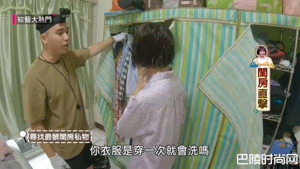 突袭过程中,无尊一进门,就把刚洗完澡的Dora吓到跌倒在地,之后踏入女方房间,一开始松口称赞还算整齐,没想到,下秒查看衣柜时,随口问你衣服是穿一次就会洗吗?Dora立刻回说,谁穿一次会洗啊?你在说什么?我跟你讲,最少要穿个3遍,然后再放下去洗衣机!就连运动内衣,她用完也不会马上洗,同样要穿3次才会洗。