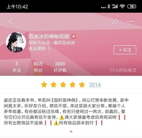 范冰冰二手商品平台帐号被挖出。