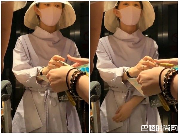 尽管全程低头走路且不时拿手遮脸,但当赵丽颖发现粉丝拿纸笔给她签名时,她仍亲切地满足对方的要求,此时镜头由下往上拍,可以看到她似乎是素颜,眼神没有丝毫不耐,离开前甚至双手合十跟身旁的粉丝道谢。
