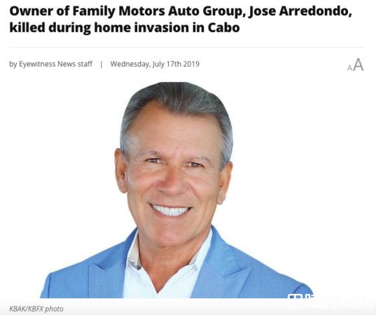 据纽约媒体《报导》,Jose Arredondo是贝克斯菲尔德汽车商人,在墨西哥当地时间16日被发现死在卡波圣卢卡斯市,8天前才在庆祝58岁生日却发生这样的事情,让外界都感到相当惊讶。墨西哥警方表示,Jose Arredondo遗体上有多处被钝器殴打的痕迹,不排除有他杀的可能性。