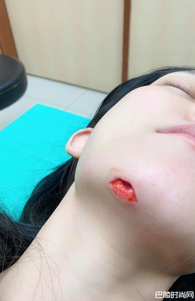 范范因为睡觉没开灯,摸黑摔了一跤,把下巴摔出一个大洞,黑人吓到警急联络认识的诊所,进行缝合手术,黑人把照片po出来,惊见她伤口很深,缝完后有如包公半月形的模样,差一点就破相了,黑人