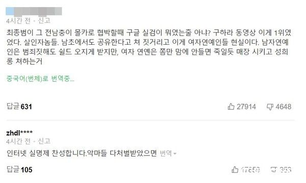 具荷拉传出过世消息后,有网友在新闻下方留言点出惊人真相,大家知道崔钟范(具荷拉前男友)用偷拍影片威胁她的时候,google热搜关键字出现什么吗?『具荷拉影片』是热搜第一名。你们这些杀人魔,有些男性网站还说要分享,这就是女艺人的现实。男艺人就算犯罪也会被盾牌保护,但只要对女艺人有一点不满意,就像要她死一样将她埋葬。