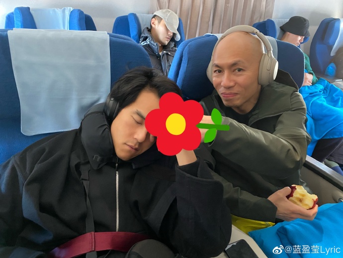 近日导演林超贤率领包括彭于晏在内的剧组人员前往重庆进行宣传,片中主演之一的大陆女演员蓝盈莹在微博贴出众人在飞机上的照片开心宣告重庆,我们来啦! ,还笑称出来混总是要还的,只见照片中的众人似乎因为忙碌的行程体力不支,纷纷躺在座位上呼呼大睡,一开始蓝盈莹因为睡得太熟被众人围着合照却不自知,但没多久她也成功还击,拍到了好几张彭于晏睡着的模样,只见他用一只手拄着额头,看起来睡得超香甜,但由于由下往上拍视角,还搞笑在他头上用相机特效别上小花,导致男神形象崩坏,引起网友热烈讨论。