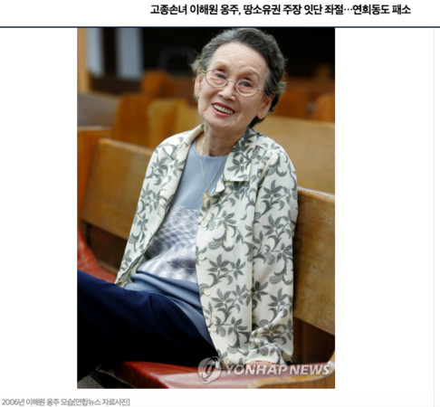李海瑗是高宗的孙女,也是义亲王的二女儿,高中毕业后嫁给留日庆应大学毕业生的李升圭,两人有三子一女。只是李升圭在韩战中被辅掳至北韩,从此下落不明。1992年李海瑗移民美国,虽然身上留有皇族的血,但她的儿子在洛杉矶以开计程车维生,旧时王谢堂前燕,最终飞入寻常百姓家。