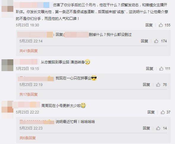 至于目前的生活重心,周扬青坦言,我现在一心只在拼事业。她昨晚发文分享与爱猫合照时,面对有粉丝鼓励希望你可以遇到更好的他,然后做最好的自己。她也以乐观态度留言回覆,不着急,先做最好的自己,然后最好的他才会出现。一番话不仅暗指正在等待下一个他,也似乎代表与罗志祥复合机率并不高,但一切仍只能等待当事人出面说分明,双方一举一动仍备受外界关注与揣测。