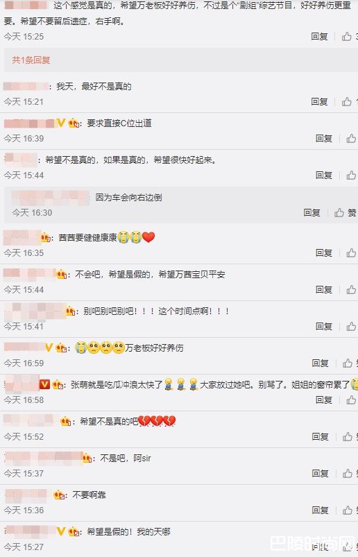 不少网友惊讶的议论纷纷:天呐,在这节骨眼上,这是什么坏运气!、希望别是真的,别是真的。、别吧别吧别吧!!!这个时间点啊!!!、希望是假的!我的天哪!而和万茜一起参加《乘风破浪的姐姐》的女星张萌也在微博上发文祈祷:希望茜茜没事!一定会没事的一定会没事的!姊妹们一定要照顾好自己!