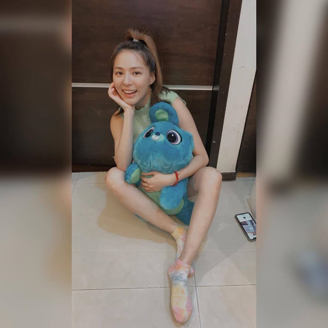 熊熊在被爆出怀孕之后,隔了好几天才在社群平台上发文,晒出一系列的照片,并在贴文内容中写下,假日悠闲午后,爱上不凋花~也想学香氛蜡烛,少女心喷发!从照片中也可以看到,她拿着娃娃坐在地上拍下一张张美照,让不少网友们看了都认为她是想用娃娃来遮住孕肚,不然怎么会在这个时候跟娃娃合照!