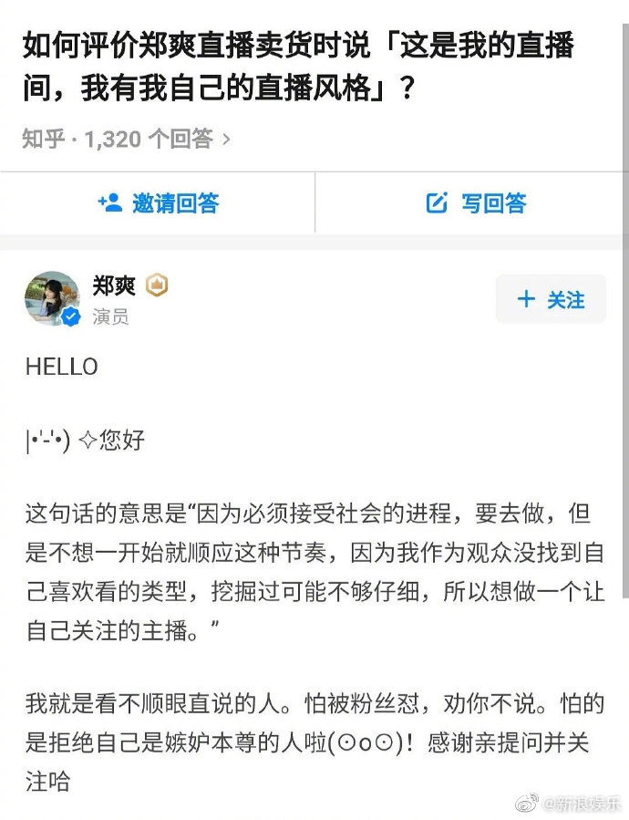 郑爽直播发脾气后掀起不少争议,对此,有网友在问答中询问:如何评价郑爽说这是我的直播间,我有我自己的直播风格?郑爽本人回应表示该句话的意思是因为必须接受社会的进程,要去做,但是不想一开始就顺应这种节奏,所以想做一个让自己关注的主播。她更直言:我就是看不顺眼直说的人。