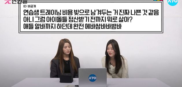 在成为偶像之前,几乎所有人都曾经历过练习生时光,近来,有2名前练习生宾荷娜、崔艺珍就在YouTube频道中,大曝成为练习生的秘辛。他们在影片中透露,经纪公司对于练习生其实会有许多规范,除了禁爱令等一般网友熟知的规范之外,甚至有些公司针对体态也有一套公式,就是身高扣掉120之后,就是标准的体重数字。