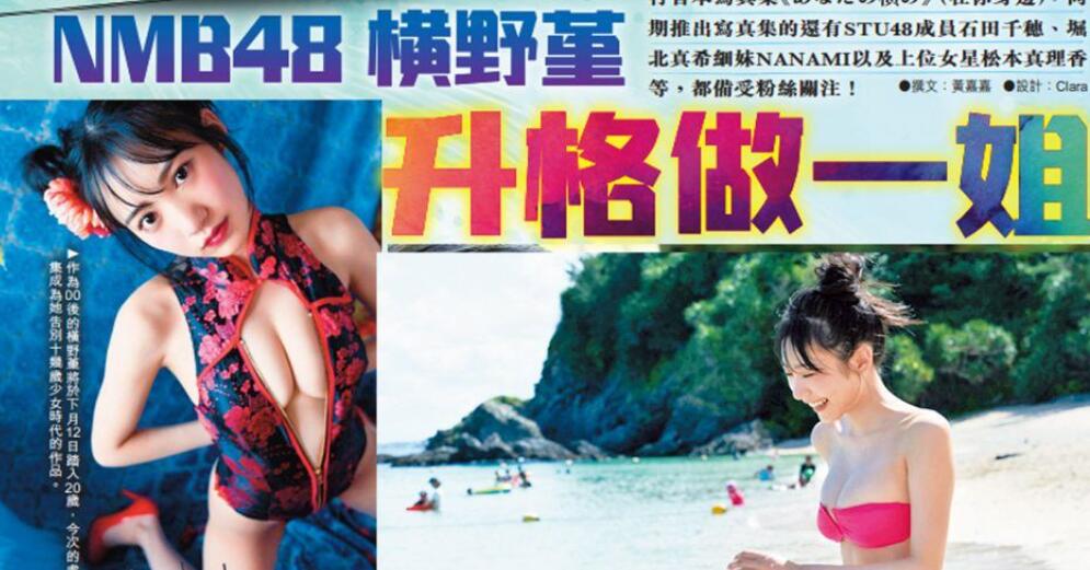 年仅19岁的横野堇(横野すみれが)五官标致,加上F Cup骄人身材,被誉为日本人气女团NMB48的新一代写真女王,近日她即将发行首本写真集《あなたのの》(在你身边),同期推出写真集的还有STU48成员石田千穗、堀北真希细妹NANAMI以及上位女星松本真理香等,都备受粉丝关注!