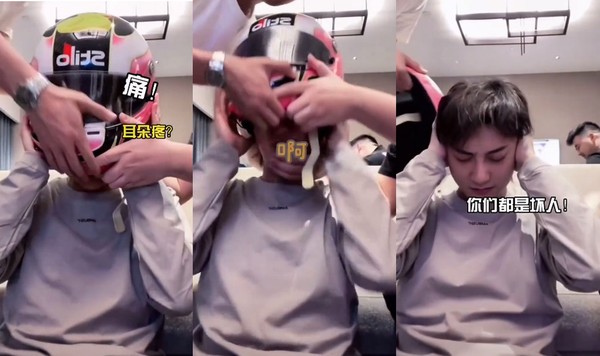 艺人黄子韬个性大方不做作,在镜头前也是超做自己,就算造型有点不对也无所谓,日前戴上全罩的安全帽开心甩头舞动,结果下一秒悲剧就发生了!头太大整个卡住拔不出来啦!