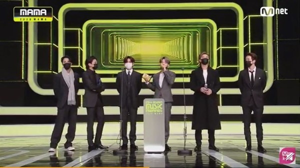 由演员裴正南与李善彬出席颁奖,先是颁发最佳舞蹈男子团体时,由BTS防弹少年团获得,他们全都戴上了口罩,并每人手拿麦克风,在疫情期间没有与其他艺人公用台上麦克风。除了致谢之外,他们还在结尾呼叫受伤不能出席的SUGA说,SUGA哥快点好起来!