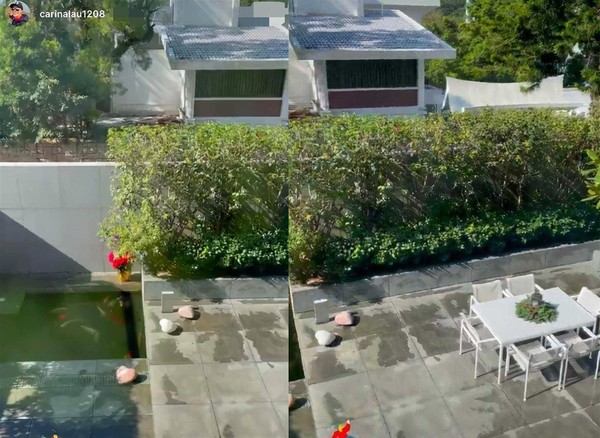 刘嘉玲5日在IG限时动态晒出家中庭院的照片,照片中可看到庭院内有一鱼池,旁边布置了些许花花草草,地上铺着灰色素面的地砖,围墙旁也种植了矮灌木,为整座宅院增添了隐密性,环境幽美舒适,而她也附上了有一个愉快的周末,看得出相当享受惬意的氛围。根据港媒推测,该处应是她跟梁朝伟在香港价值2亿港币的豪宅内部。
