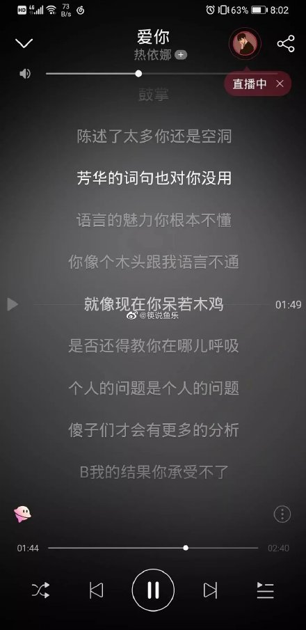 热依娜新歌推出后引来不少网友朝圣,而她也在留言处标记陈芳语并加码回呛没别的,就是不用像你准备那么久。昨天晚上看到微博,写了个词儿、睡了个觉,早上起来woy录了一首歌,这不,爱你的词儿都在这儿,欢迎你继续diss back,奉陪!!