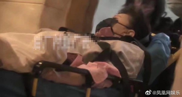 蔡明18日深夜前往录制节目,然而却传出突然身体不适,被紧急送往医院。从照片中可以看出,她躺在担架上带着口罩,双眼紧闭、眉头微微皱起,脸色苍白,身上还包着被子,整体看起来十分痛苦、虚弱。